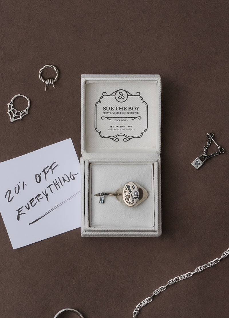 Note: Sue The Boy Jewellery is oxidised by hand, slight colour variations are celebrated in each unique piece.